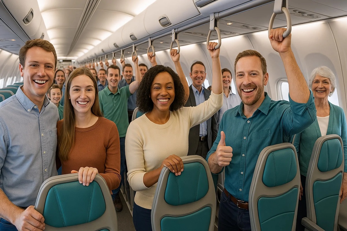 Este año, la broma fue recogida por la web de aerolíneas Upgraded Points, que publicó un artículo diciendo que Frontier Airlines (FRON) iba a lanzar una «clase vertical» o tarifa para viajar de pie.