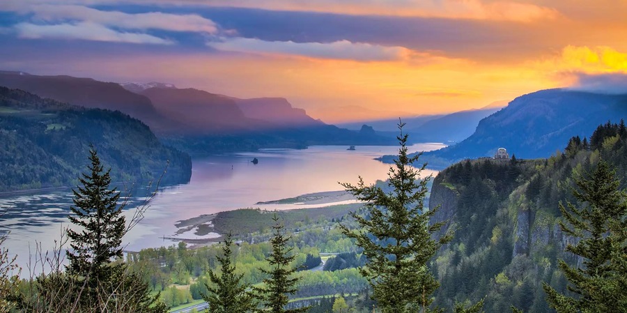 El Columbia Gorge, una garganta impresionante que separa los estados de Oregón y Washington, es un lugar ideal para cruceros escénicos, kayak y deportes acuáticos rodeados de belleza natural.