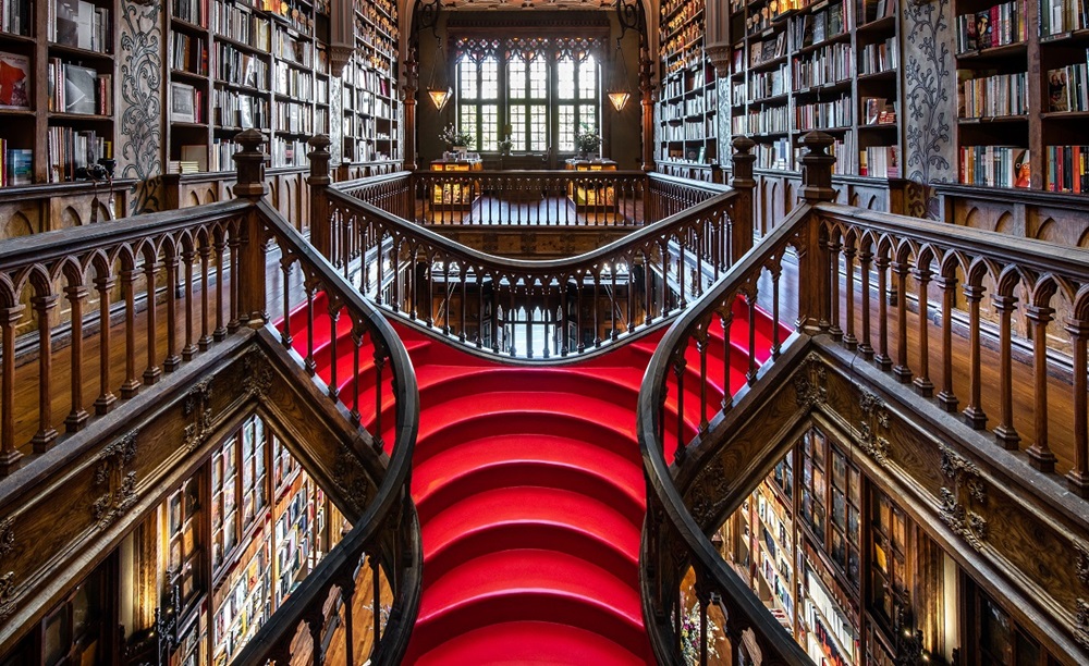 Livraria Lello es el anzuelo y la puerta de entrada: un interior neogótico con vitral y la célebre escalera roja que ha convertido a la librería en símbolo de la ciudad y parada ineludible para cualquier lector viajero.