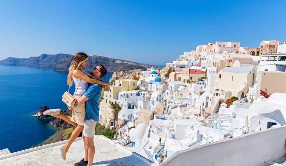 Santorini es un clásico del romance cinematográfico. Sus casas blancas con techos azules, sus calles estrechas y su mar infinito forman un escenario que invita a perderse en un sueño.